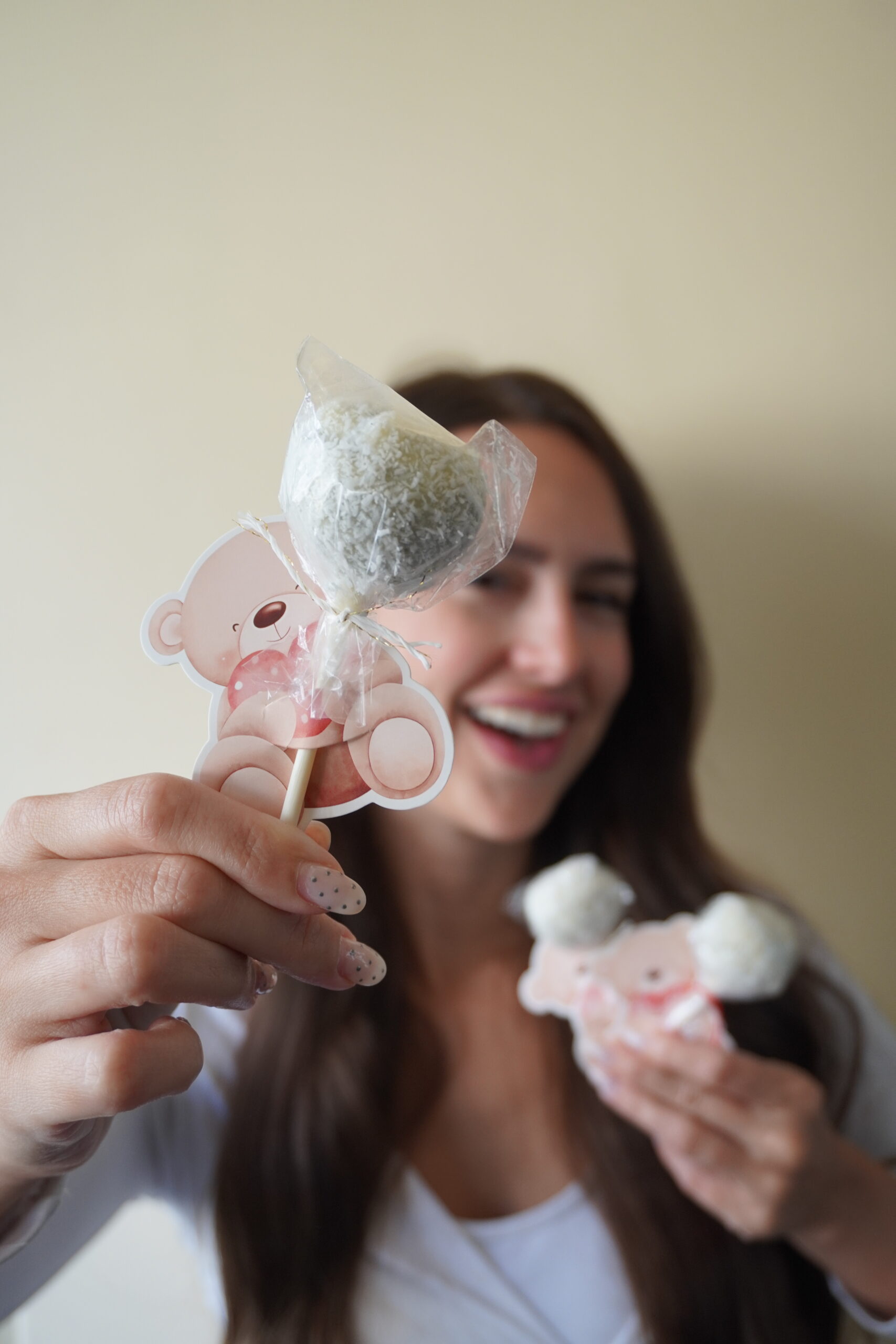 Pack de 3 CAKEPOPS de brownie keto, bañados en chocolate blanco sin azucar agregada endulzado con stevia. Con Deco de ositos!